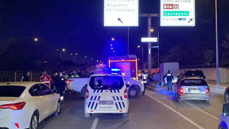 SANCAKTEPE'de sürücüsünün direksiyon hakimiyetini kaybettiği otomobil, yol ayrımındaki bariyerlere çarparak yan yattı.