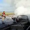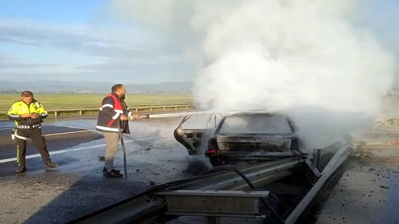 BOLU'nun Dörtdivan ilçesinde, Anadolu Otoyolu'nda bariyerlere çarpıp, alev alan otomobildeki 3 kişi yaralandı.