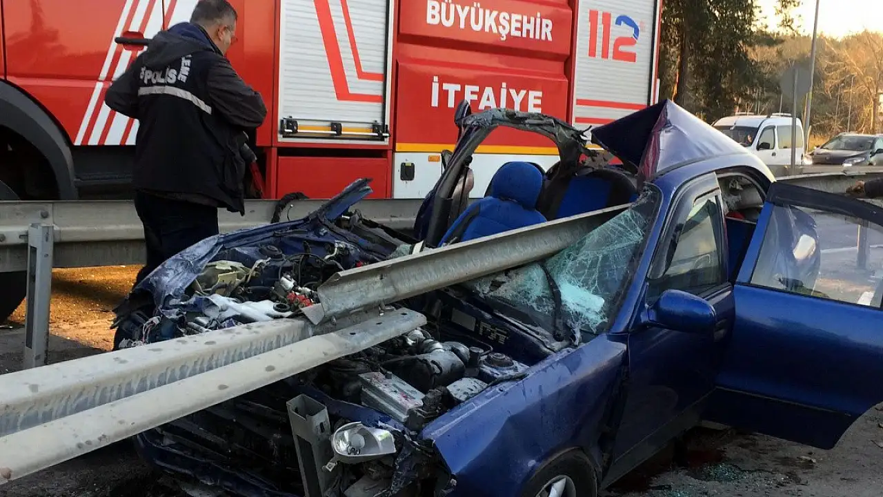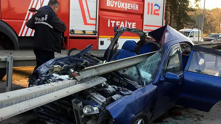 Bariyerlere saplanan otomobildeki anne ve oğlu öldü