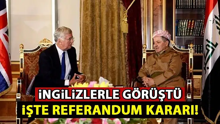 Erbil'e gelen İngiliz Savunma Bakanı'nın referandumu ertele talebine cevap veren Barzani, uluslararası garanti olmadan referandumun ertelenmeyeceğini söyledi.