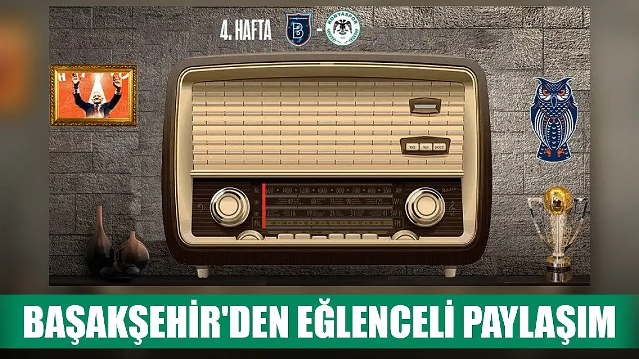 Başakşehir'den eğlenceli paylaşım. Konyaspor'un Süper Lig rakiplerinden Medipol Başakşehir takımı fikstürün açıklanmasının ardından ligde karşılaşacakları takımlarla ilgili sosyal medyadan bir video yayınladı. Videoda bir radyo paylaşımı geldi ve radyonun frekansı takımlarla en çok özdeşleşmiş müzikler ve rakiplerinin logosuyla karşılaşacakları hafta ile verildi. 4. haftada Konyaspor'u ağırlayacak olan İstanbul ekibi, Konyaspor için Nadide Sultan'ın meşhur "Yürü Konyalım Yürü" şarkısı çaldı.