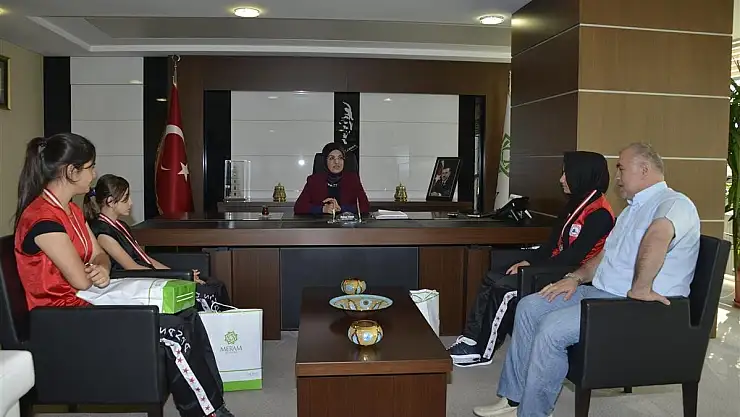 Konya'nın merkez Meram İlçe Belediye Başkanı Fatma Toru'yu Afşin Eshab-ı Kehf Wushu Bölge Şampiyonası'nda altın madalya kazanan sporcular ve antrenörleri ziyaret etti.