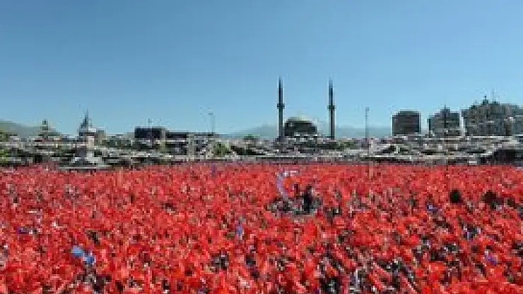 Başbakan Erdoğan, Kayseri'de düzenlenen 'Milli İradeye Saygı' mitinginde Cumhuriyet Meydanı'nı dolduran 10 binlerce kişiye seslendi.