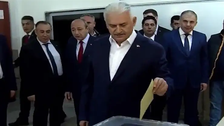 Başbakan Binali Yıldırım oyunu kullanmak üzere İzmir'de Adnan Olcay Ortaokulu'na geldi.