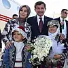 Bu arada, karşılama sırasında yöresel elbiseli iki çocuk, Sare Davutoğlu'na çiçek verdi.