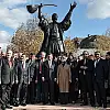 Davutoğlu, cemevi önünde, Dernek Başkanı ve Alevi Dedesi Ali Ekber Yurt ve diğer Alevi dedeleri tarafından karşılandı. Başbakan Davutoğlu, cemevi bahçesinde bulunan Pir Sultan Abdal’ın heykeli önüne geçerek, eşi Sare Davutoğlu ile fotoğraf çektirdi. Fotoğraf çekiminde, bazı bakan ve partililer de yer aldı.