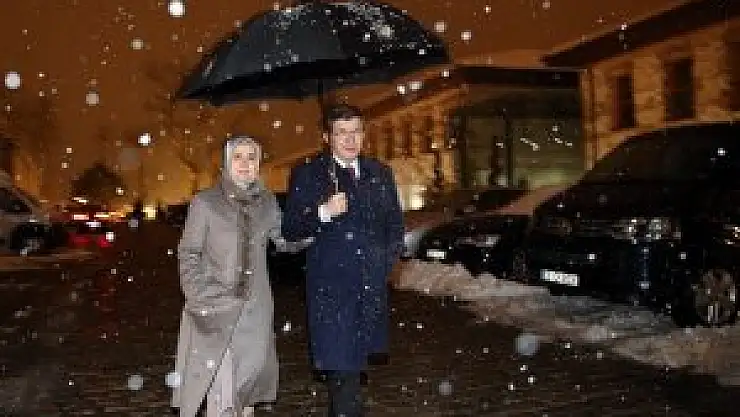 Başbakan Ahmet Davutoğlu, eşi Sare Davutoğlu ile Dolmabahçe Çalışma Ofisi'nden çıkarak bir süre yürüdü.