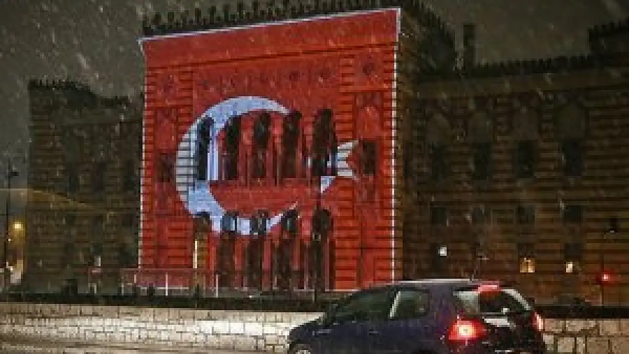 Paylaşımında, Vijecnica Kütüphanesi'nin Türk bayrağıyla ışıklandırılmış fotoğraflarına yer veren Davutoğlu, Boşnakça "Allah'a emanet Saraybosna" sözleriyle Bosnalılara teşekkür etti.