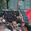 Katılımcıların ellerinde ay-yıldızlı bayrakların yanı sıra Filistin ve Azerbaycan bayrakları da bulunuyor.