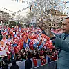 "30 Mart'ta yeni bir istiklal mücadelesinin zaferine hep birlikte ulaşacağız. 30 Mart'ta bu ülkenin millet tarafından idare edildiğini, egemenliğin millete ait olduğunu herkese bir kez daha göstereceğiz. Zira 1950'den beri bu ülkede bir mücadele var. Medya, iş adamları, elitler, seçkinler, çeteler, onlarla birlikte CHP ve statüko partileri 'Bu ülkeyi sadece biz yönetiriz' diyorlar, 'Biz ne dersek o olacak' diyorlar, 'Bu ülkede istikameti biz veririz, bu ülkenin rotasını biz çizeriz' diyorlar. Bunun gerçekleşmediği zamanlarda darbe yaparak başbakan, bakan idam ederek demokrasiyi rafa kaldırarak, ülkeyi kaosa, istikrarsızlığa, anarşiye sürükleyerek demokrasiyi ve milli iradeyi tehdit ediyorlar. Ama biz, çok farklı bir şey söylüyoruz, merhum Menderes ne demişti? 'Yeter söz milletindir' demişti. Biz AK Parti olarak ne dedik? 'Yeter, söz de karar da milletindir' dedik. 12 yıl boyunca böyle geldik. 12 yıl boyunca ülkenin idaresinde sizler söz sahibi oldunuz. Birileri girdi mi devreye, girmedi. Siz karar verdiniz, siz bize istikamet verdiniz biz de sizin verdiğiniz istikamette yürüdük."