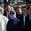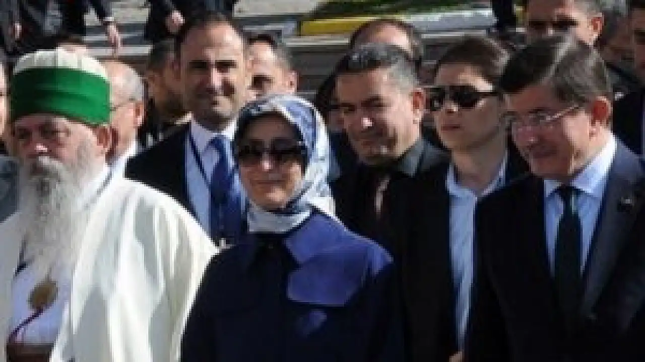 Davutoğlu ve eşi Sare Davutoğlu'na, türbe önünde bekleyen vatandaşlar sevgi gösterisi ve tezahüratlarda bulundu.
