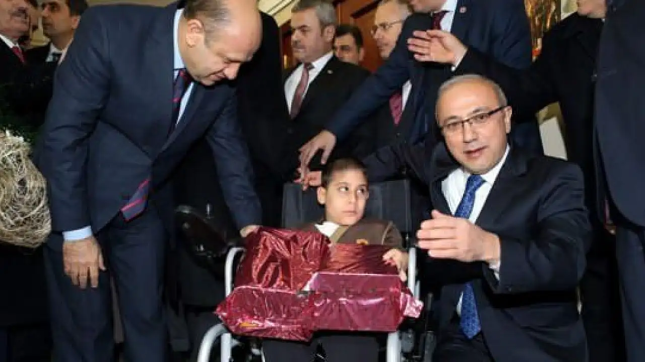 Bakan Elvan, Başbakan Davutoğlu'nun 11 yaşındaki Burak Emir Gülay'a gönderdiği akülü tekerlekli sandalyeyi teslim etti.