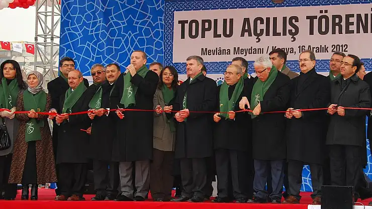 Konuşmasının ardından Başbakan Erdoğan ve protokol; bakanlıklar, Konya Büyükşehir Belediyesi ve ilçe belediyelerinin tamamladığı toplam 115 yatırımı hizmete açacak. Açılacak yatırımlar arasında programın yapılacağı 10 bin kişilik Uluslararası Spor ve Kongre Merkezi de yer alıyor.