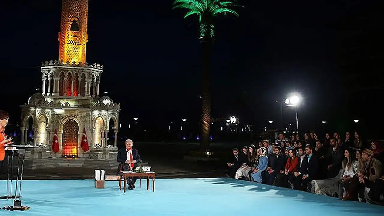 Başbakan Binali Yıldırım, İzmir Saat Kulesi önünde gerçekleştirilen Habertürk TV - Bloomberg HT ortak canlı yayınında "Türkiye'nin Referandumu-Gençler Başbakana Soruyor" adlı programa katıldı.