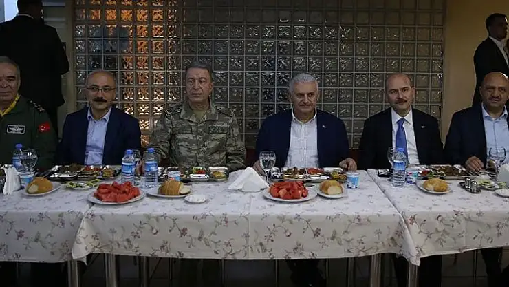 Başbakan Yıldırım, beraberinde Genelkurmay Başkanı Orgeneral Akar, Milli Savunma Bakanı Işık ve İçişleri Bakanı Soylu ile Lice 1. Jandarma Komando Alay Komutanlığındaki askerlerle sahurda bir araya geldi