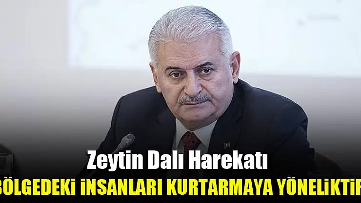 Başbakan Yıldırım, Zeytin Dalı Harekatı'na ilişkin, 'Tamamen orada yaşayan Kürt, Arap, Türkmen, sivil, gücü, imkanı olmayan insanları kurtarmaya yönelik bir faaliyettir.' dedi.