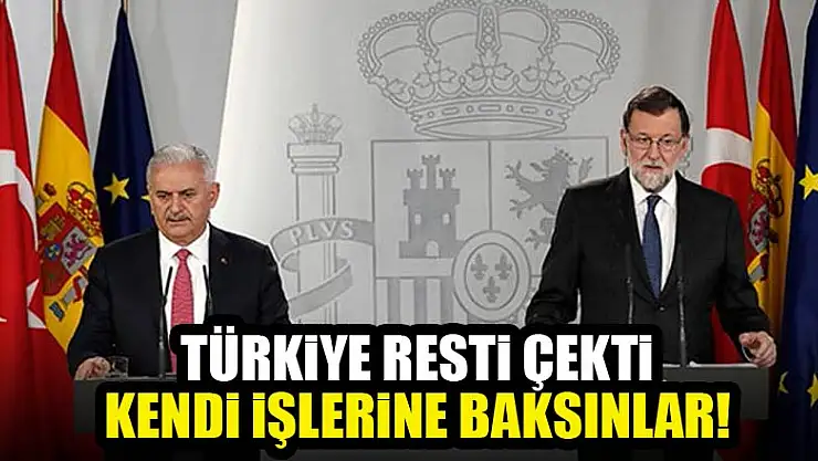 Başbakan Yıldırım İspanya'da. Yıldırım, İspanya Başbakanı Rajoy tarafından resmi törenle karşılandı. Türkiye-İspanya Hükümetlerarası 6. Zirvesi", Başbakan Binali Yıldırım ve İspanya Başbakanı Mariano Rajoy başkanlığında yapıldı. Türkiye heyetinden zirveye, Avrupa Birliği Bakanı Ömer Çelik, Çevre ve Şehircilik Bakanı Mehmet Özhaseki, Ekonomi Bakanı Nihat Zeybekci, Gıda Tarım ve Hayvancılık Bakanı Ahmet Eşref Fakıbaba, Ulaştırma Denizcilik ve Haberleşme Bakanı Ahmet Arslan, Dışişleri Bakan Yardımcısı Ahmet Yıldız ile İçişleri Bakan Yardımcısı Mehmet Ersoy katıldı. İki başbakan zirve sonrası ortak açıklama yaptı. Görüşmelerde FETÖ'nün İspanya'daki faaliyetlerinin de ele alındığını söyleyen Başbakan Binali Yıldırım'ın açıklamalarının satır başları şöyle: