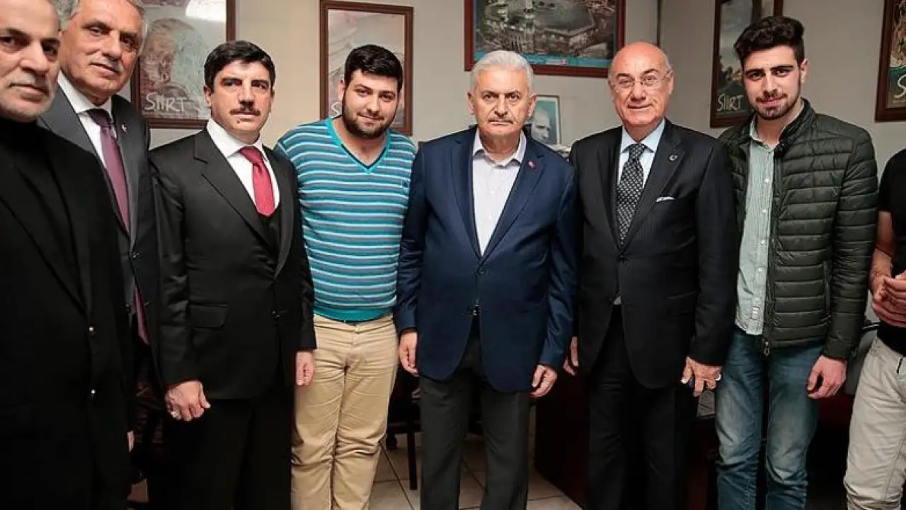 Başbakan Binali Yıldırım, Siirt'te düzenlenen miting sonrası esnaf Muhammet Ali Sualp'ın (solda) çay davetini kabul ederek, dükkanında ziyaret etti.