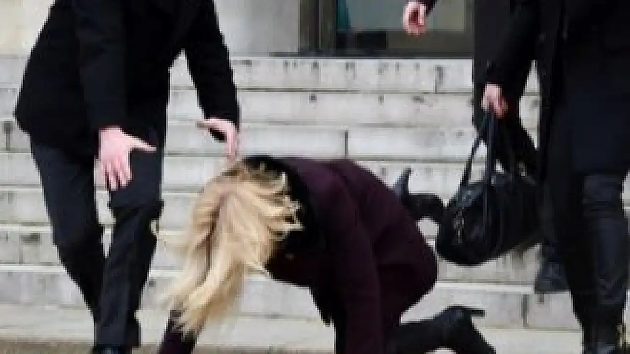 Danimarka'nın kadın başbakanı Helle Thorning-Schmidt, Paris'te teröre karşı yapılan Birlik Yürüyüşü öncesi Elysee Sarayı'ndan çıkarken talihsiz bir kaza geçirdi.