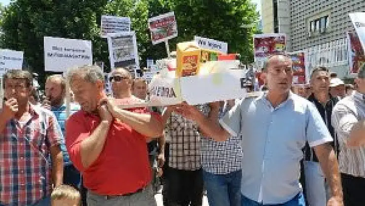 Kosova'da süt üreticileri ile süt işletmeleri temsilcileri Başbakanlık önünde eylem yaptı.