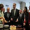 Cumhurbaşkanı Erdoğan, daha sonra pastayı dilimleyerek tek tek basın mensuplarına ikramda bulundu.
