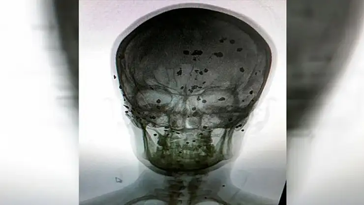 Burada çekilen röntgeninde tek tek görülen saçmalarla 13 yıldan beri yaşamak zorunda kalan Araz, "Bugüne kadar doktorlar hiç ameliyat etmedi. Bana, kafamda bulunna 80 saçmanın bir zararının olmadığını söylediler. Saçmalardan iki tanesi, kafatasımı delerek beyin zarında takılıp durduğunu söylediler. İki tanesi ise ses tellerime zarar verdi. Artık vücudumdaki bu saçmalardan kurtulmak istiyorum. Bu konuda yetkililerin bana destek olmasını istiyorum" dedi.