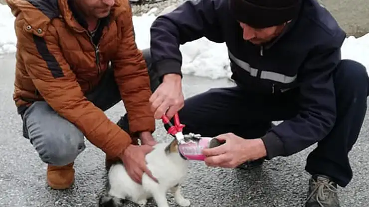 Konya'nın Derebucak ilçesinde başı konserve kutusuna sıkışan kedi, belediye görevlilerinin müdahalesiyle kurtarıldı.