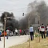 Başkale Devlet Hastanesine yürüyen terör örgütü yandaşları, hastanenin yakınında bulunan İlçe Emniyet Müdürlüğüne ait sivil bir minibüsü durdurdu. İçindeki polis memurunu tartaklayarak araçtan çıkaran göstericiler, minibüsü ateşe verdi.