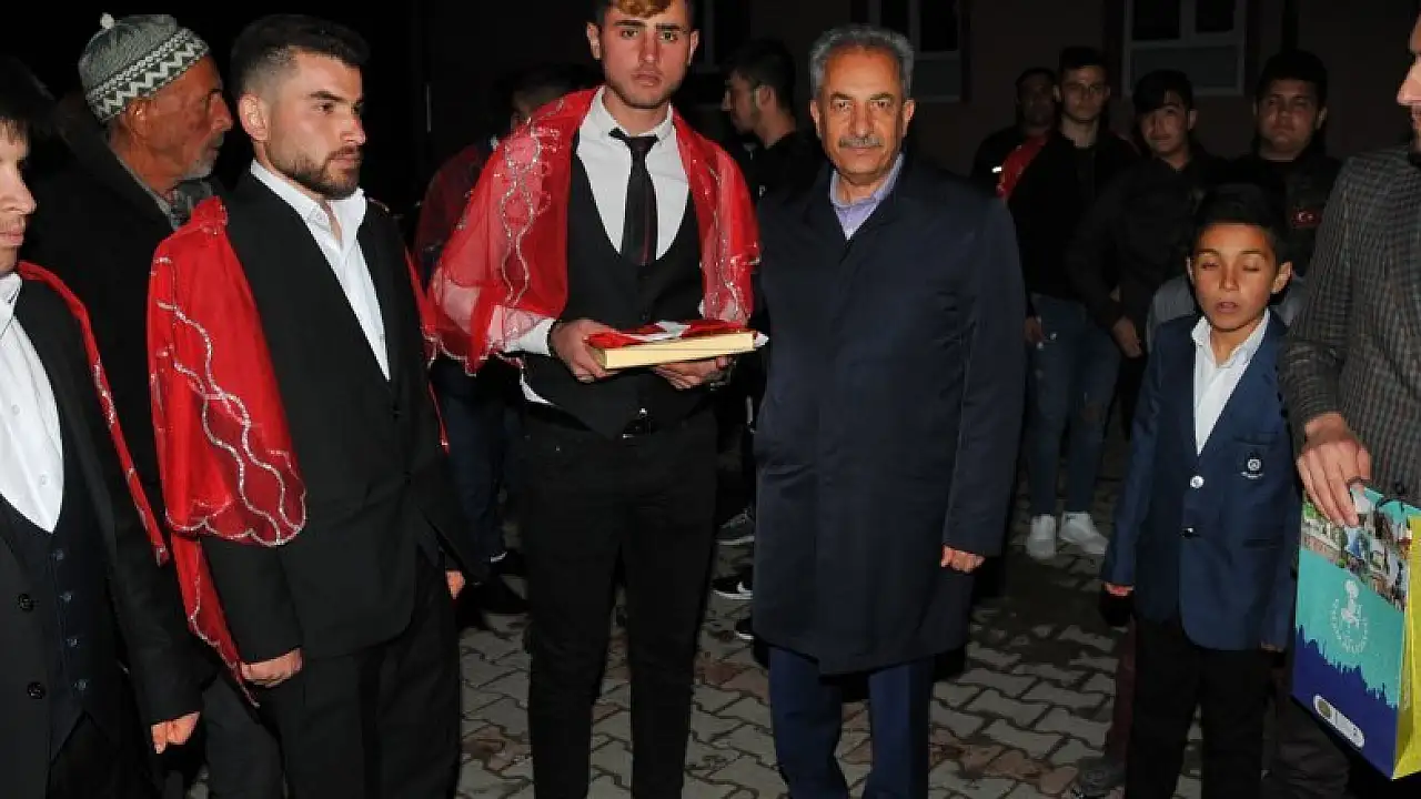 Başkan Akkaya ve beraberindekiler, askere gidecek gençleri tebrik ederek, Türk bayrağı ve Kur'an-ı Kerim hediye etti.