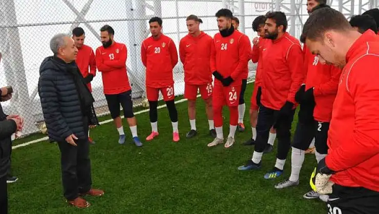 Konya'nın Akşehir İlçe Belediye Başkanı Salih Akkaya, çalışmalarını sürdüren Akşehirspor'un antrenmanını ziyaret ederek oyunculara tatlı ikram etti.