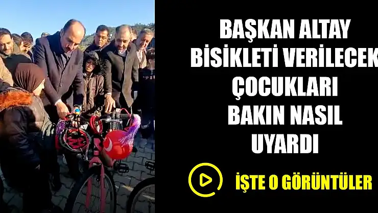 Başkan Altay bisikleti verilecek çocukları bakın nasıl uyardı