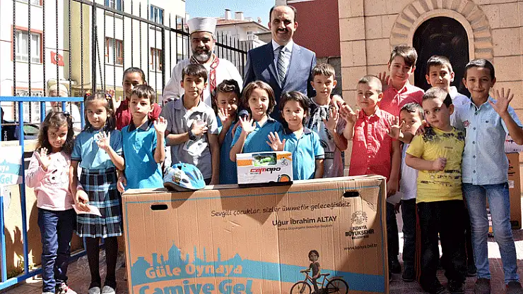 Konya Büyükşehir Belediye Başkanı Uğur İbrahim Altay, Güle Oynaya Camiye Gel Projesi kapsamında bisiklet almaya hak kazanan çocukların mutluluğuna ortak oldu.