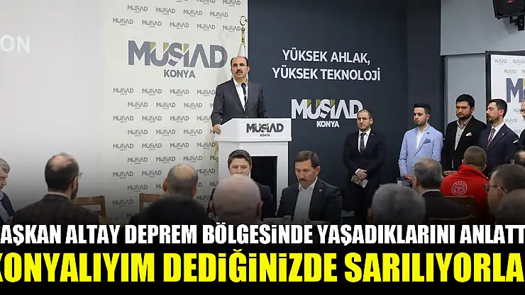 Konya Büyükşehir Belediye Başkanı Uğur İbrahim Altay, MÜSİAD Konya Şubesi ile Konya Sivil Toplum Kuruluşları Platformu'nun düzenlediği programlarda Konya'nın deprem bölgesinde yaptığı çalışmaları anlattı.