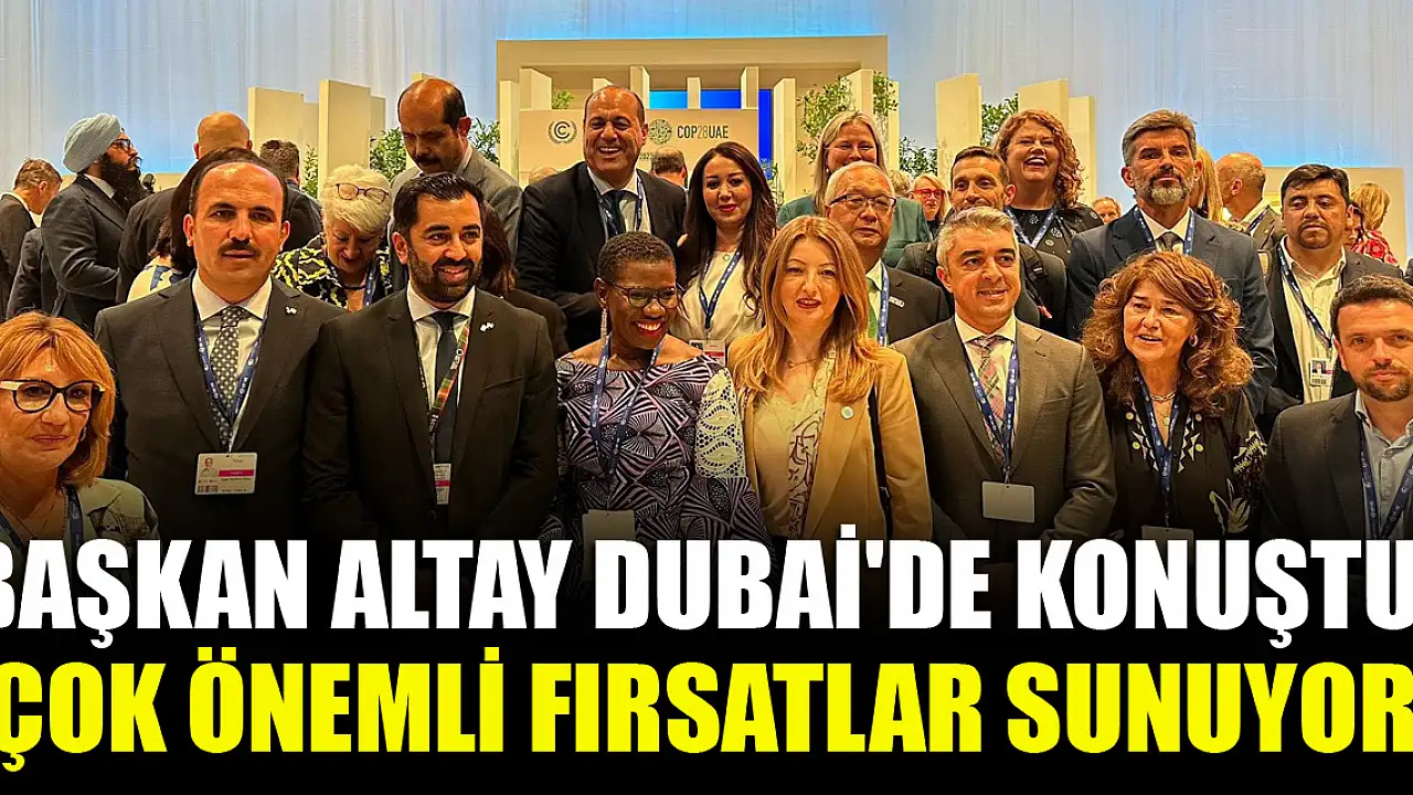 Birleşik Arap Emirlikleri'nin Dubai şehrinde düzenlenen programda, küresel iklim değişikliğinin şehirler üzerindeki yıkıcı etkileri ve bununla başa çıkmak için alınması gereken önlemlere ilişkin görüşlerini paylaşan Başkan Altay, COP’un küresel çapta iklim değişikliğiyle mücadele stratejilerini belirlemek ve uluslararası iş birliğini sağlamak için çok önemli fırsatlar sunan bir konferans serisi olduğunu söyledi.