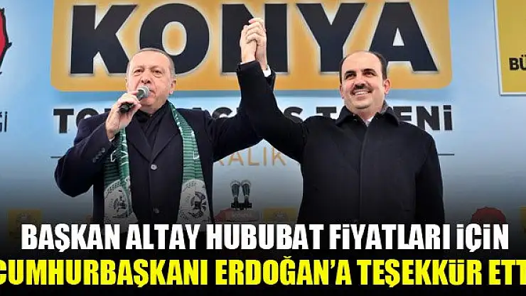 Uluslararası Tarım Şehirleri Birliği Başkanı ve Konya Büyükşehir Belediye Başkanı Uğur İbrahim Altay, 2021 yılı hububat ve bakliyat alım fiyatları ile yaş çay alım fiyatları için Cumhurbaşkanı Recep Tayyip Erdoğan'a teşekkür ederek, fiyatların çiftçilere hayırlı olmasını diledi.