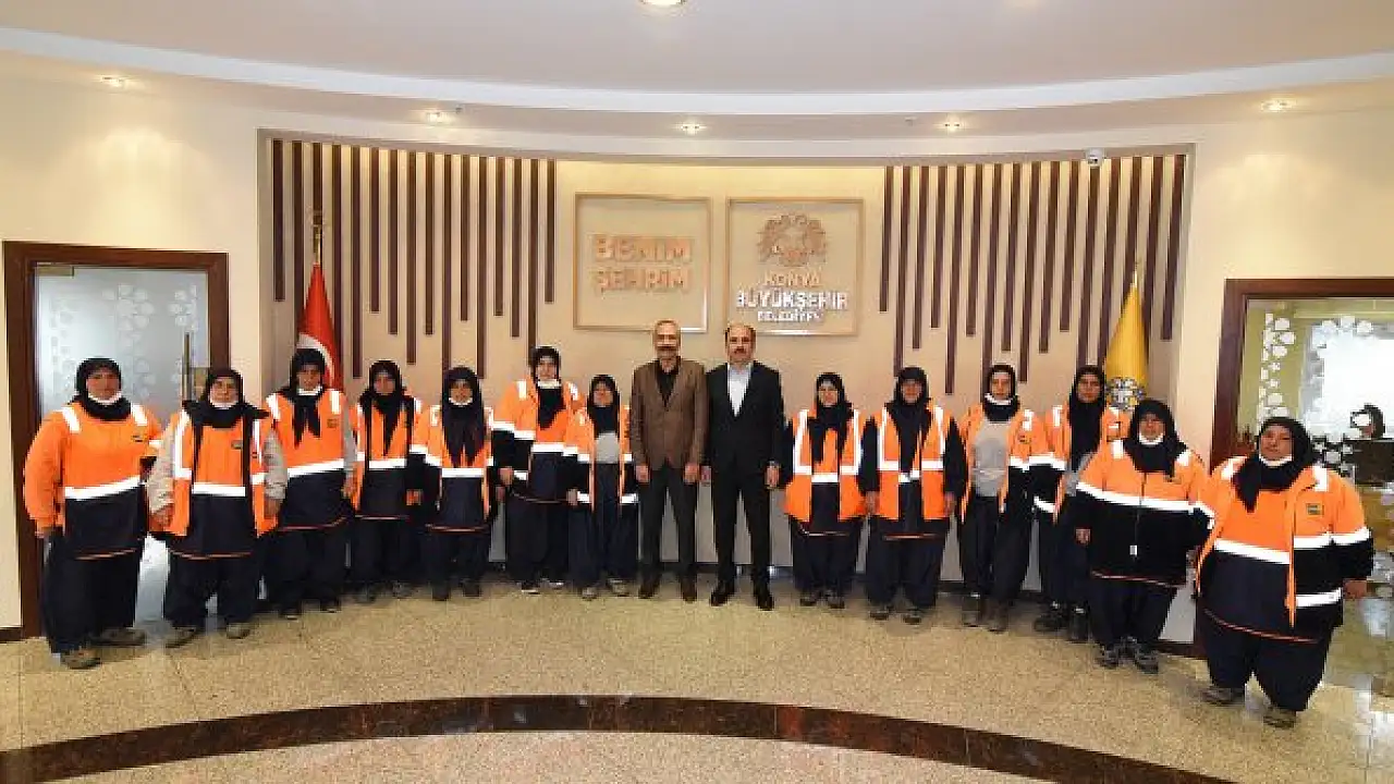 Konya Büyükşehir Belediyesi Park ve Bahçeler Dairesi Başkanlığı bünyesinde çalışan kadın personeller Başkan Altay’ı ziyaret etti.