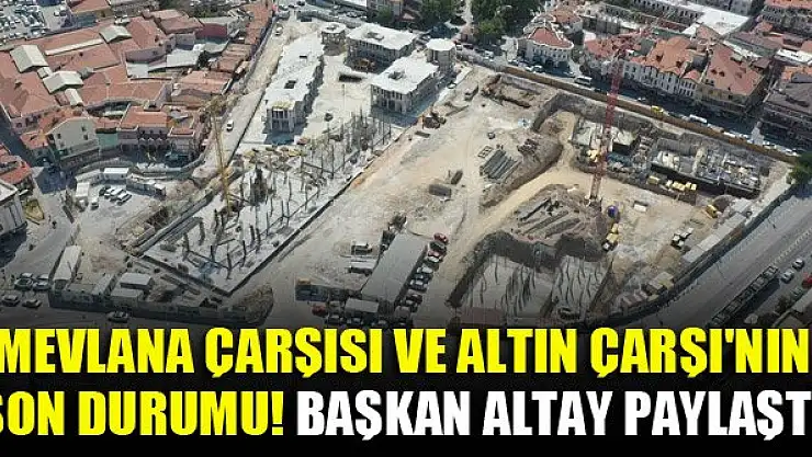 Konya'da yıkımları tamamlanan ve yeniden inşası başlanan Mevlana Çarşısı ve Altın Çarşı'nın son durumunu Büyükşehir Belediye Başkanı Uğur İbrahim Altay paylaştı.
