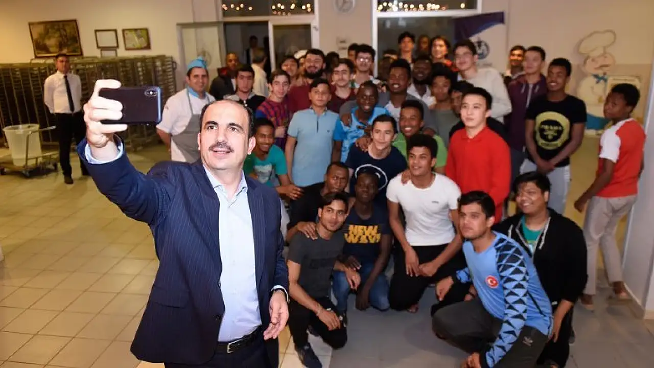 Konya Büyükşehir Belediye Başkanı Uğur İbrahim Altay, Uluslararası Mevlana Anadolu İmam Hatip Lisesinde eğitim gören 68 farklı ülkeden öğrencilerin sahur bereketine ortak oldu.