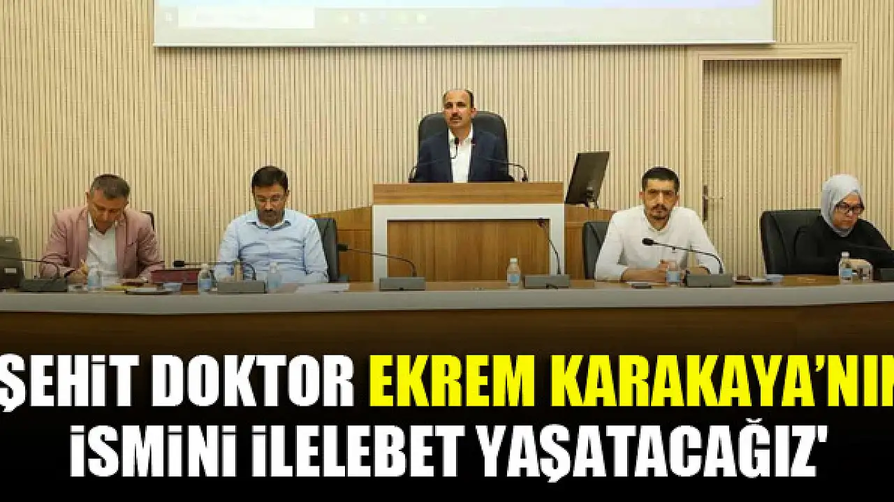 Konya Büyükşehir Belediye Meclisi'nin Temmuz ayı ikinci toplantısı Konya Büyükşehir Belediye Başkanı Uğur İbrahim Altay başkanlığında yapıldı. Toplantıda yaptığı konuşmaya Konya Şehir Hastanesi'nde görev başında şehit edilen Dr. Ekrem Karakaya'yı rahmetle anarak başlayan Başkan Altay, şehit doktorun isminin şehir merkezinde bir caddeye verilmesi konusunun meclis gündeminde olduğunu söyledi.