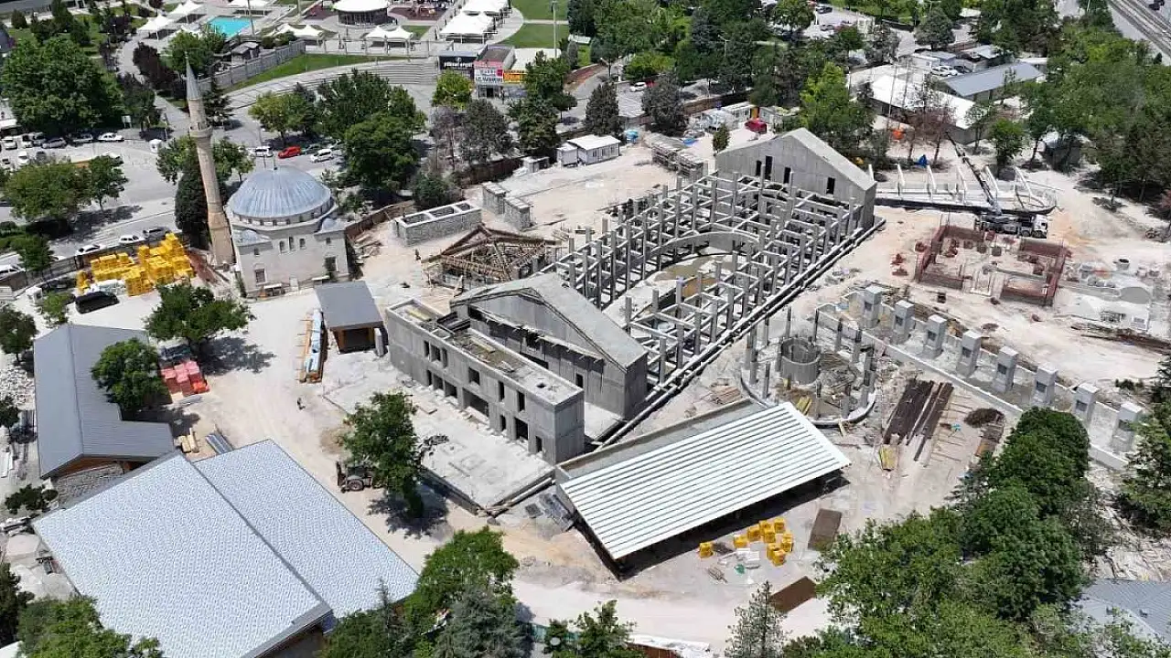 Konya Büyükşehir Belediyesi tarafından eski belediye binasının yerinde inşaatı sürdürülen Türkiye'nin ilk Sıfır Karbon binası olacak Şehir Kütüphanesi hızla yükseliyor.
