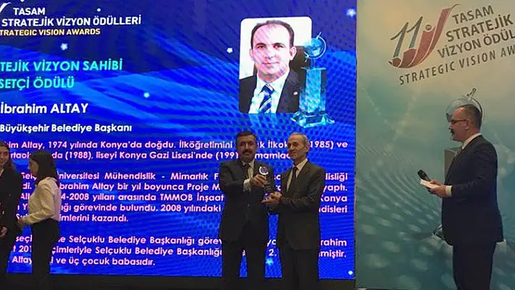 Türk Asya Stratejik Araştırmalar Merkezi (TASAM) tarafından 2006 yılından beri Türkiye’nin stratejik vizyonunu temsil eden devlet adamlarını, bürokratları, bilim insanlarını, kurumları, iş adamlarını, sanatçıları, siyasetçileri ve gazeteci-yazarları onurlandırmak amacıyla verilen Stratejik Vizyon Ödülleri’nin 11’incisinin sahipleri belli oldu. Türkiye’den ve 40’a yakın ülkeden resmi, sivil, özel ve her düzeyde katılımcıların yer aldığı İstanbul’daki ödül töreninde Konya Büyükşehir Belediye Başkanı Uğur İbrahim Altay “Stratejik Vizyon Sahibi Siyasetçi” ödülüne layık görüldü. Törende ödülü Konya Büyükşehir Belediyesi Genel Sekreter Yardımcısı Abdülmelik Ötegen, TASAM Milli Savunma ve Güvenlik Enstitüsü Yüksek İstişare Kurulu Üyesi Aydın Nezih Doğan’ın elinden aldı.