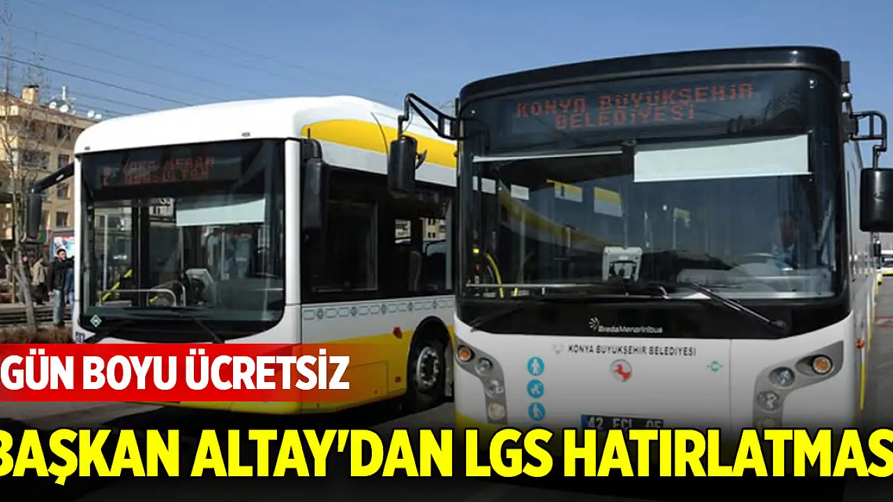 Konya Büyükşehir Belediye Başkanı Uğur İbrahim Altay, LGS'ye girecek öğrenciler için sınav günü boyunca toplu ulaşım araçlarımız öğrencilere, velilere ve sınav görevlilerine ücretsiz olarak hizmet vereceğini duyurdu.