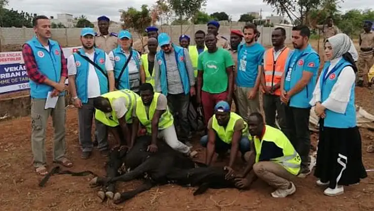 Cumhurbaşkanı Recep Tayyip Erdoğan'ın vekaletinin de aralarında olduğu kurbanlar TDV tarafından Togo'da kesildi.