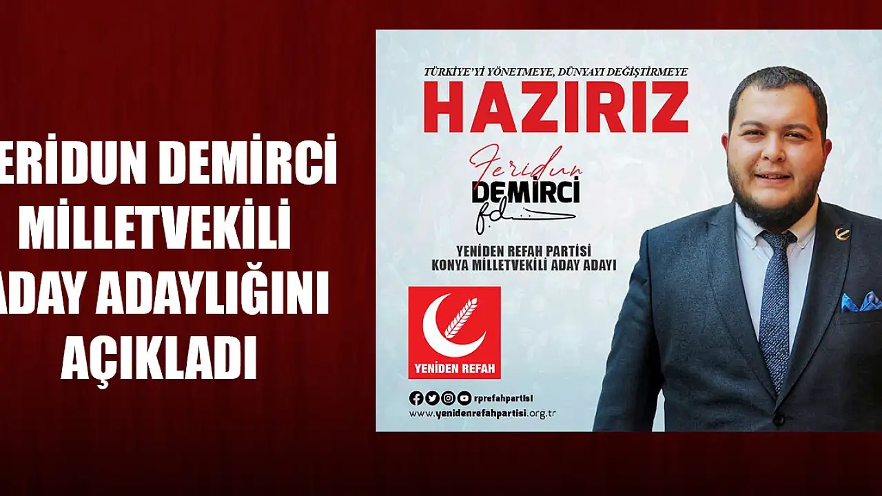 Konyanın bilinen genç iş adamı ve aynı zamanda Yeniden Refah Partisi Konya İl Gençlik Kolları Başkanı Feridun Demirci Milletvekili Aday adaylığını açıkladı.