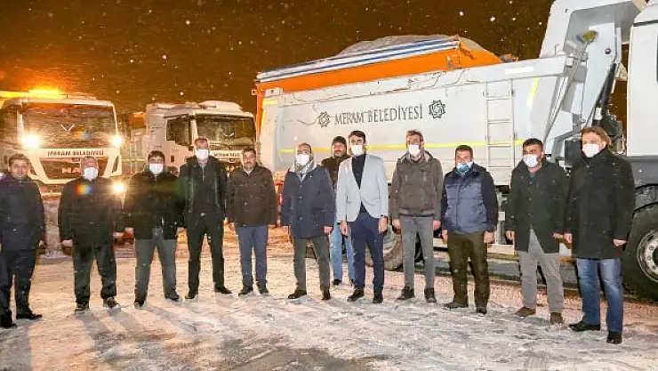 Kar yağışı, don ve soğuk hava dalgasına karşın hazırlıklarını aylar öncesinden tamamlayan ve planlayan Meram Belediyesi, tüm yurdu etkisine alan kar yağışıyla birlikte teyakkuza geçti. Ekipler, İlçe genelinde yaşanabilecek olumsuzlukların önüne geçmek için 55 araç ve 100 personelle 7/24 esasına göre çalışmalarını sürdürüyor. Meram Belediye Başkanı Mustafa Kavuş da ekiplerin koordinasyonu ve çalışmalarını takip amacıyla gece boyu ekiplerle birlikte nöbetteydi.