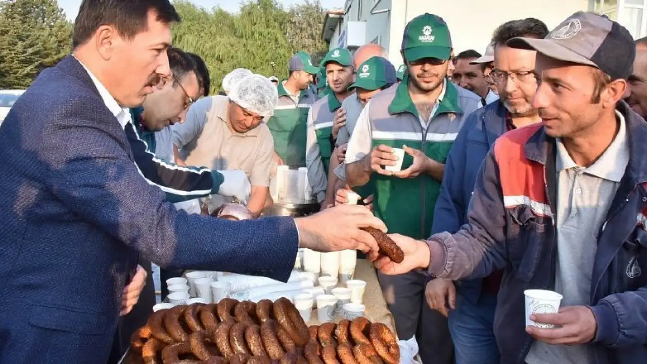 Konya'nın merkez Karatay İlçe Belediye Başkanı Hasan Kılca, Tatlıcak Tesislerinde personelle simit ve süt eşliğinde kahvaltıda bir araya geldi.