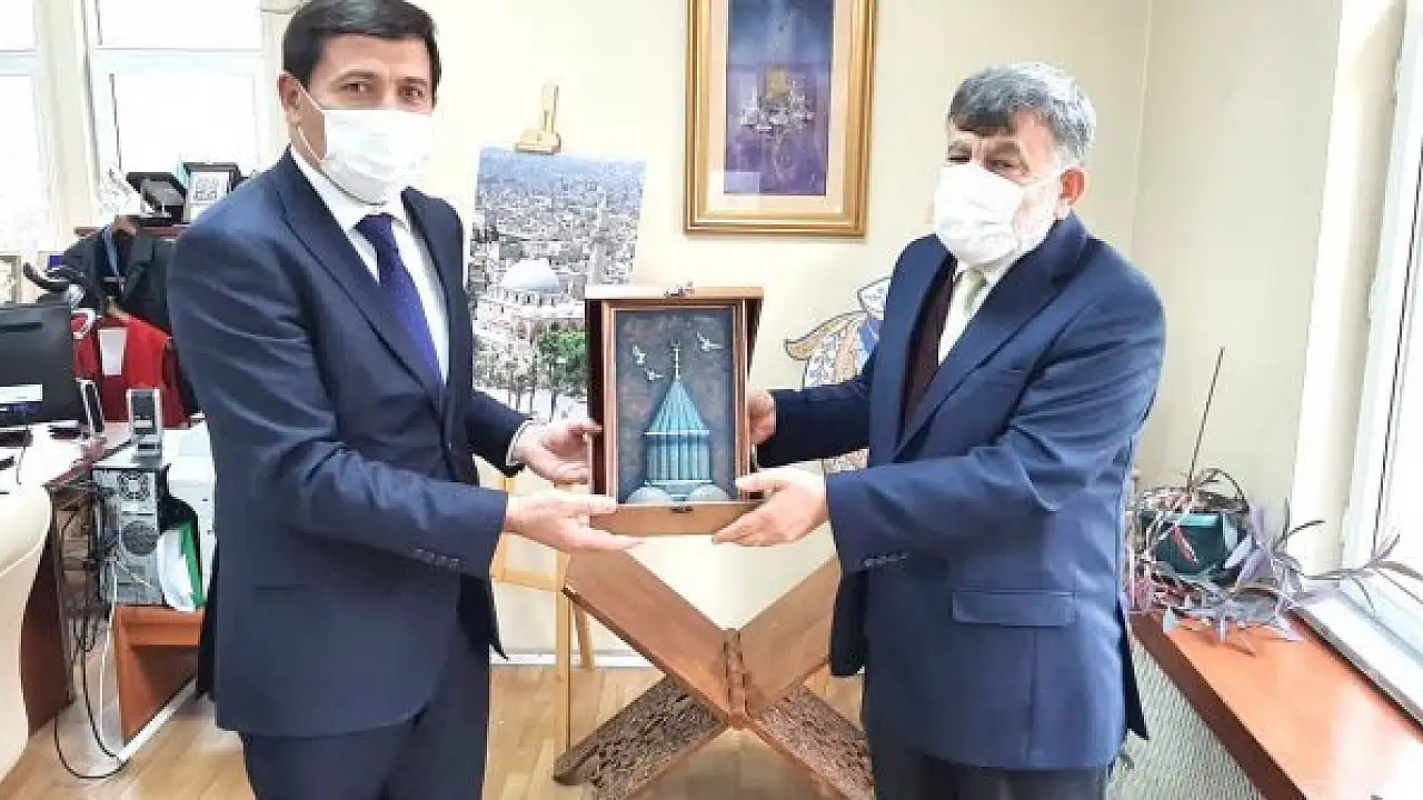 Karatay Belediye Başkanı Hasan Kılca, Konya Yazma Eserler Bölge Müdürü Bekir Şahin'i ziyaret etti.