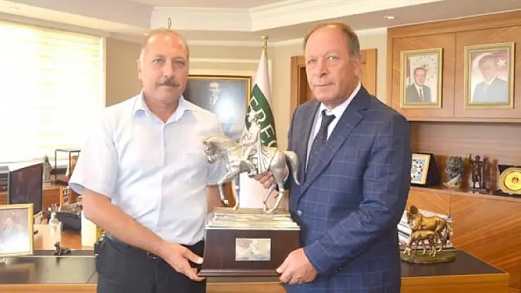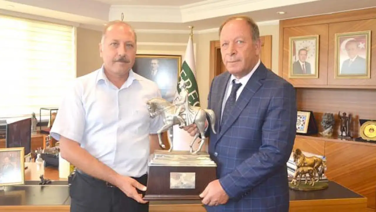 Ereğli İlçe Tarım Müdürü Ahmet Aydın Sarıca ve Hara İşletmecisi Çapan Gökdemir Ereğli Belediye Başkanı Hüseyin Oprukçu’yu makamında ziyaret etti. Ziyaretten duyduğu memnuniyeti ifade eden Başkan Oprukçu, “2021 yılı Gazi Koşusu Birinciliği Kupası ile gelerek mutluluklarını bizimle paylaştıkları için teşekkür ederim” dedi. Ziyaret, hatıra fotoğrafının çekilmesi ile sona erdi.