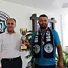 Denizli’nin Pamukkale ilçesinde düzenlenen Kızılcabölük Off Road Oyunları'nda lastiğinin patlamasına rağmen yarışı sürdürerek 3’üncü olan Beyşehirli off-road pilotu Haceli Şam, Beyşehir Belediye Başkanı Murat Özaltun'u makamında ziyaret etti