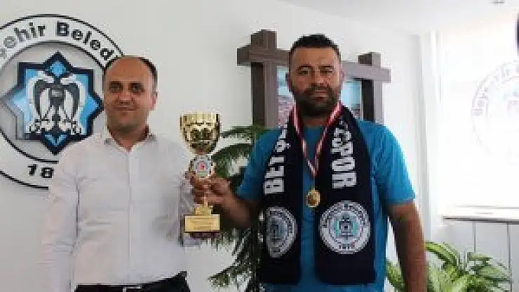Kızılcabölük Off Road Oyunları'nda lastiğinin patlamasına rağmen yarışı sürdürerek 3'üncü olan Beyşehirli off-road pilotu Haceli Şam, Beyşehir Belediye Başkanı Özaltun'u ziyaret etti